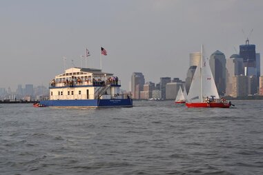 This secret floating bar in new york city harbor is the best place to enjoy summer the honorable william wall is the clubhouse of the manhattan yacht club.
