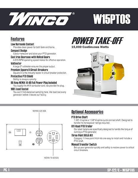 Winco pto generator accessories.